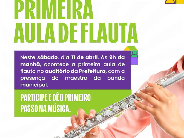Continue lendo.Prefeitura de Independência promove primeira aula de flauta com a Secretaria de Cultura e Turismo
